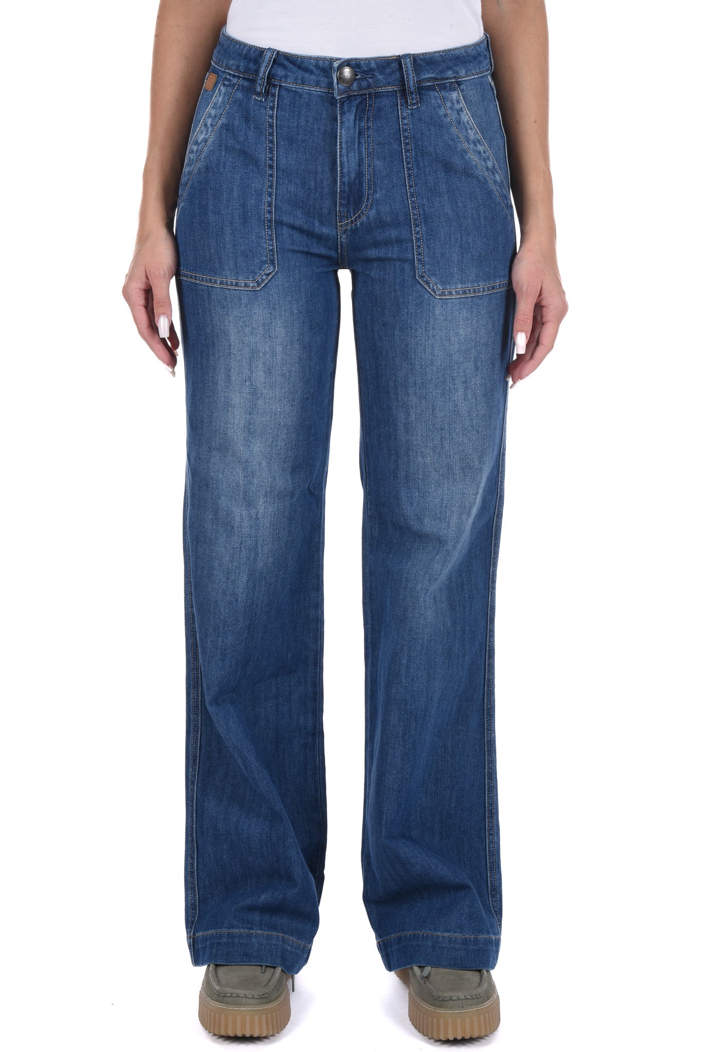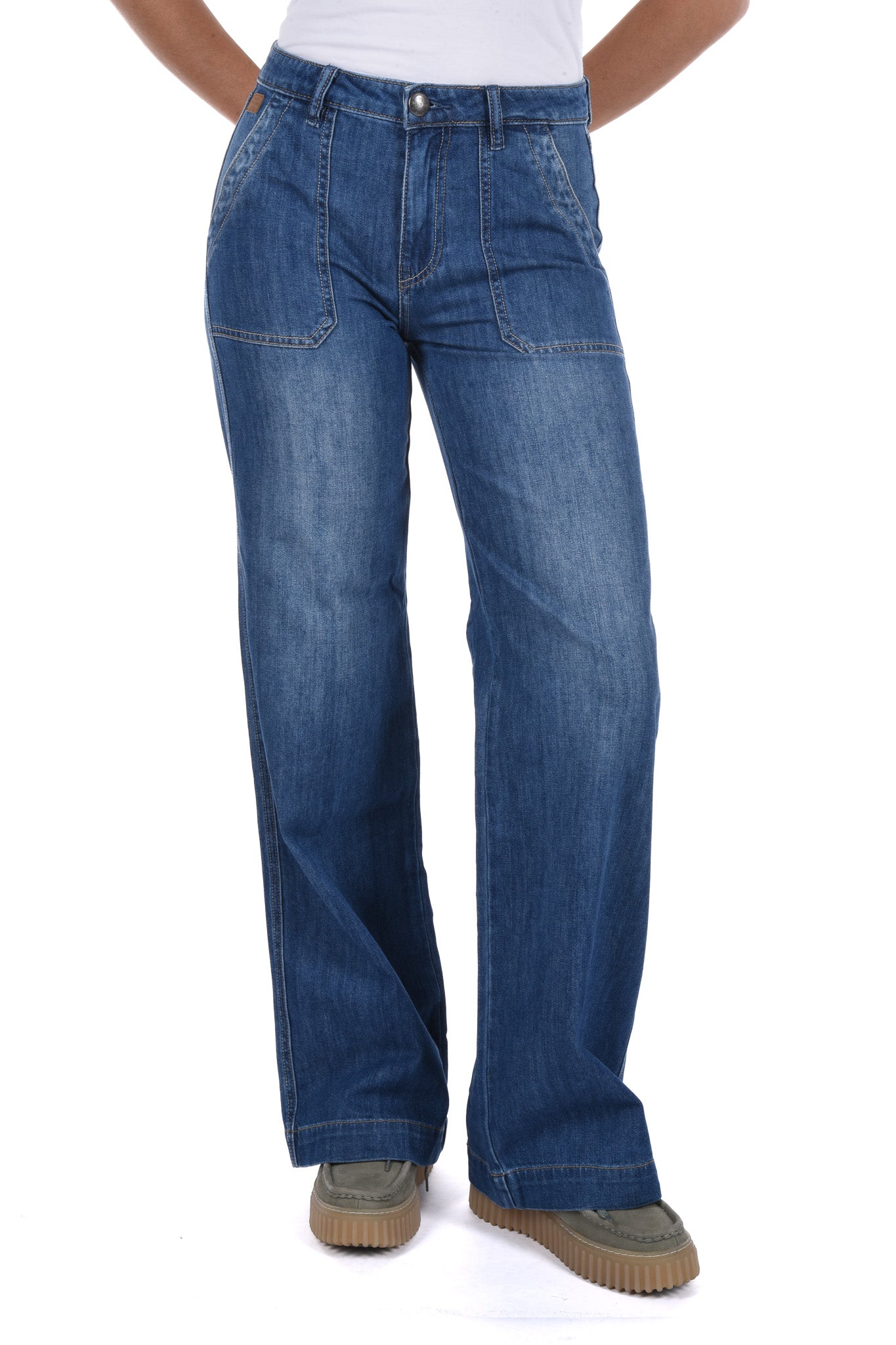 Notre mannequin mesure 172cm et porte une taille 27 Inch pour le jeans et une taille S pour le haut