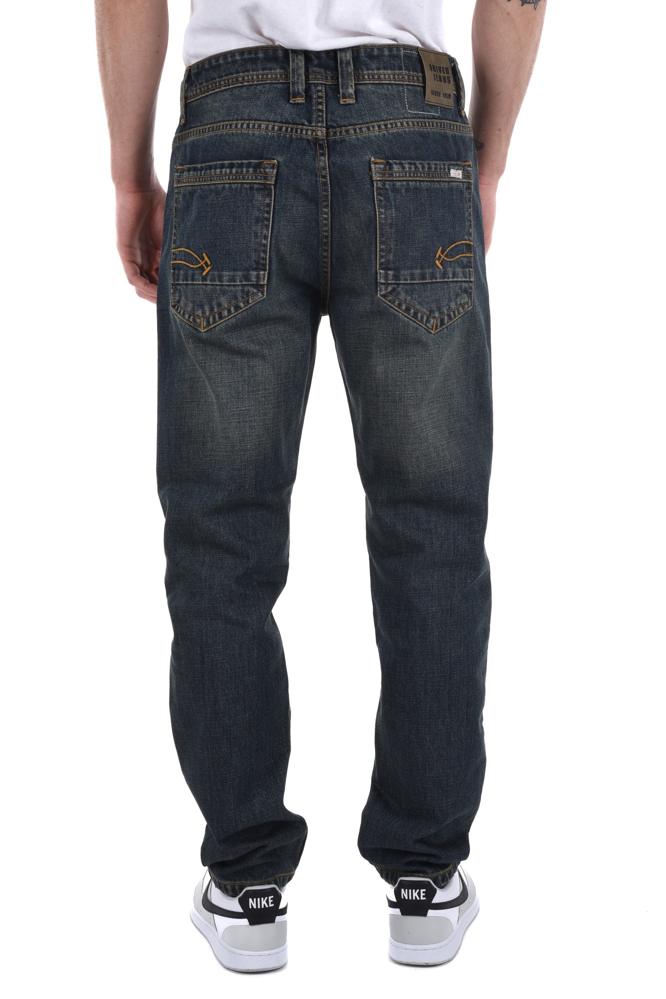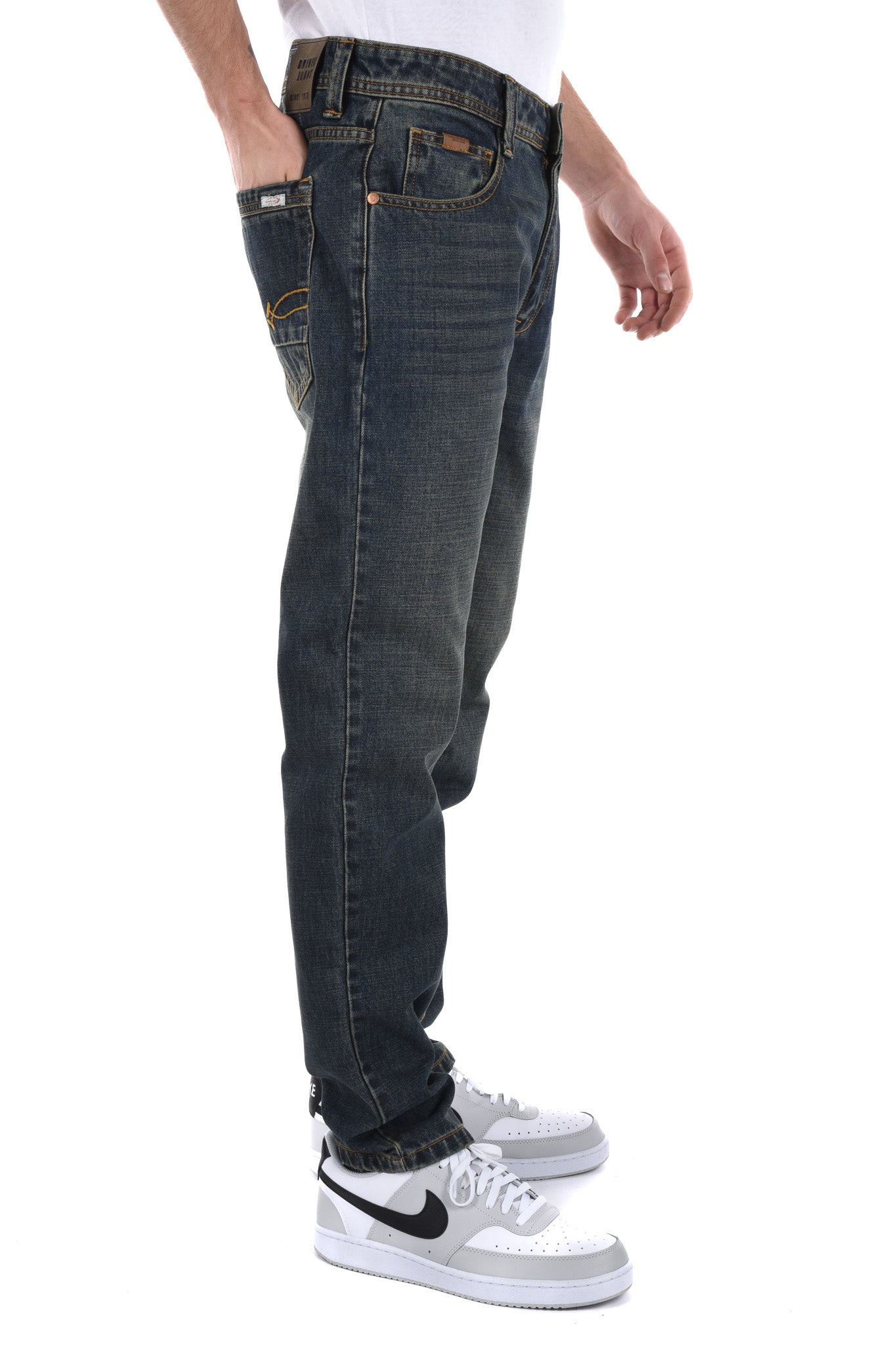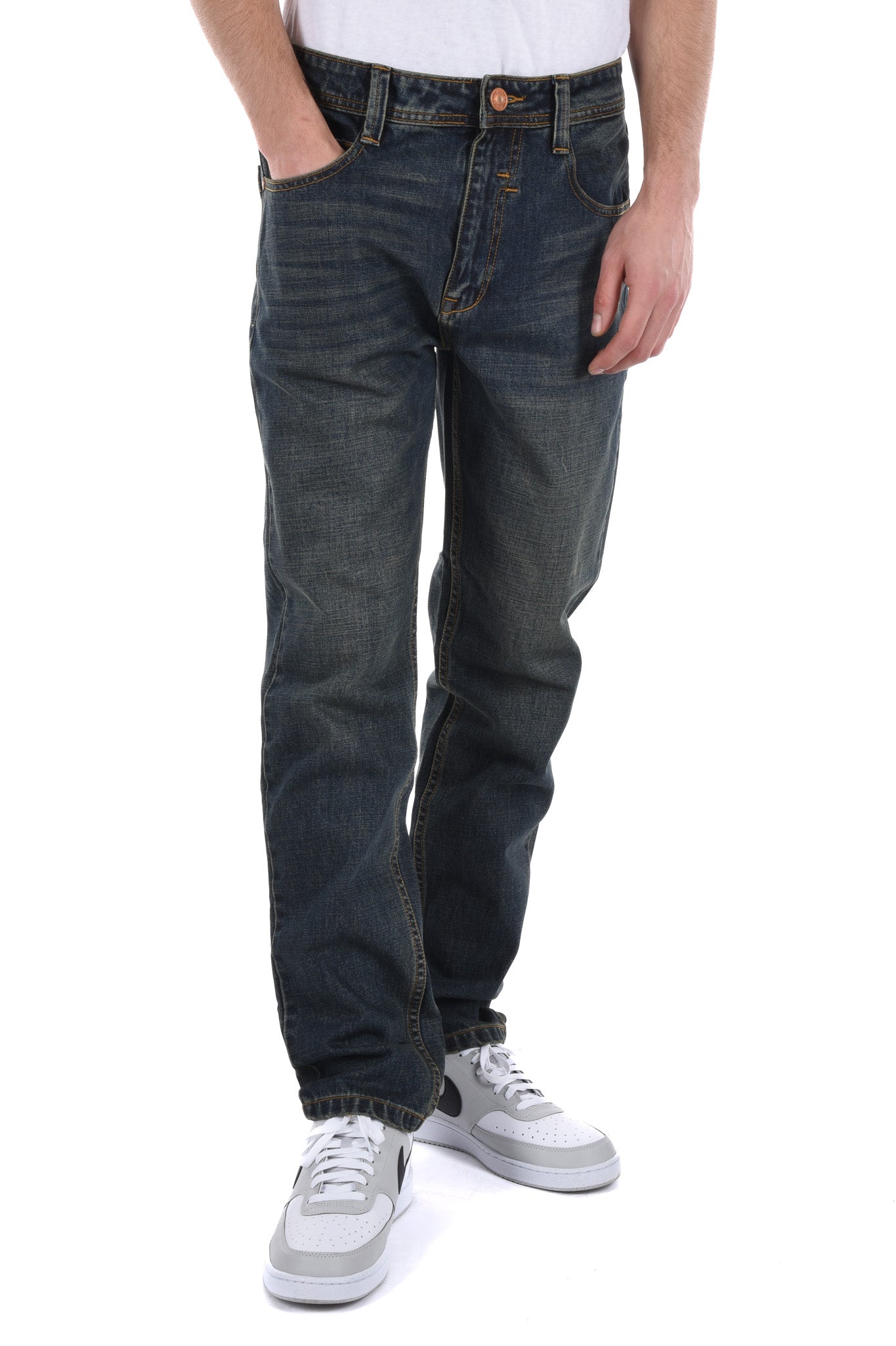 Notre mannequin mesure 186 cm et porte une taille 32 Inch pour le jeans et une taille M pour le haut