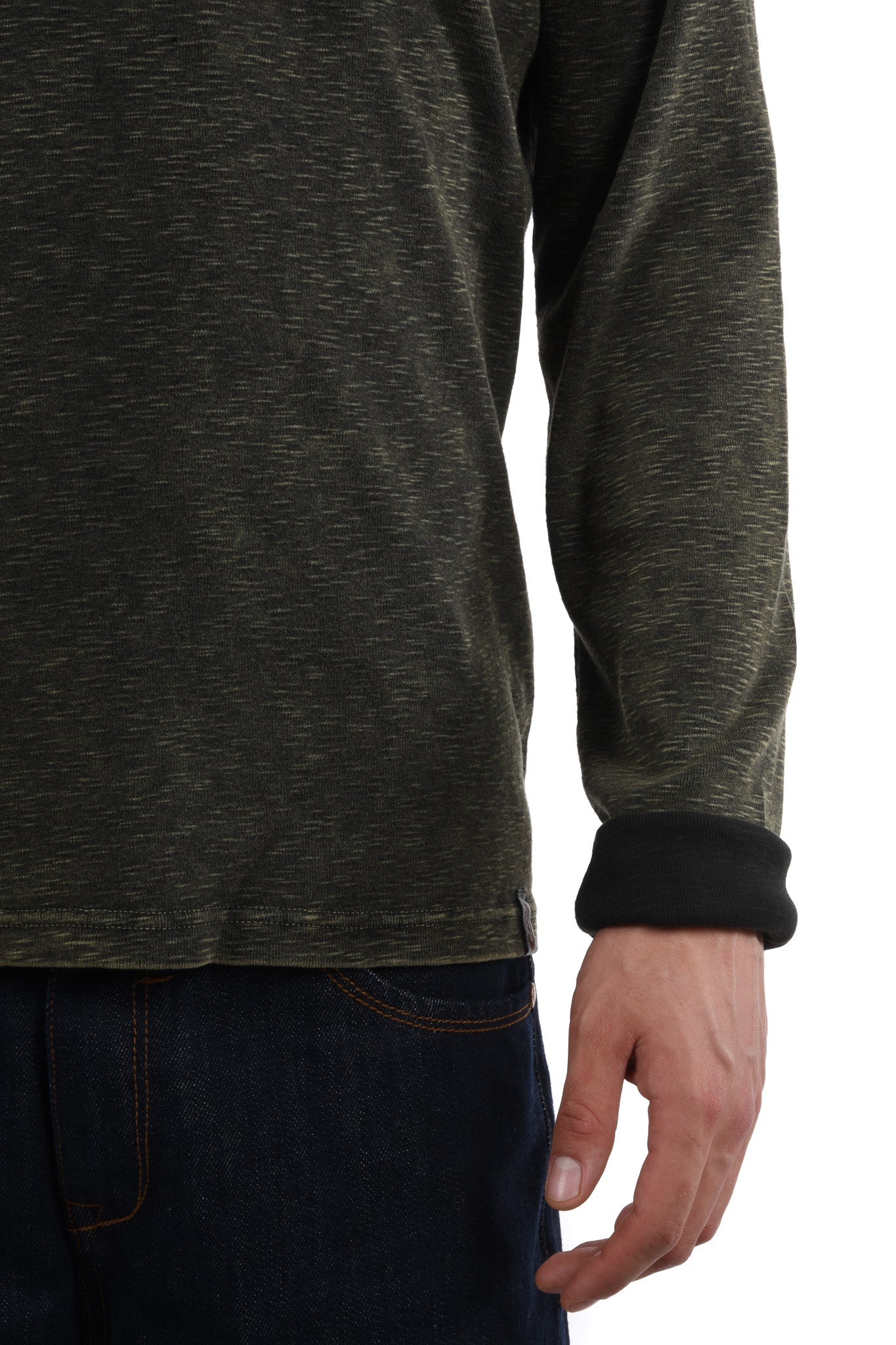 Notre mannequin mesure 186 cm et porte une taille 32 Inch pour le jeans et une taille M pour le haut