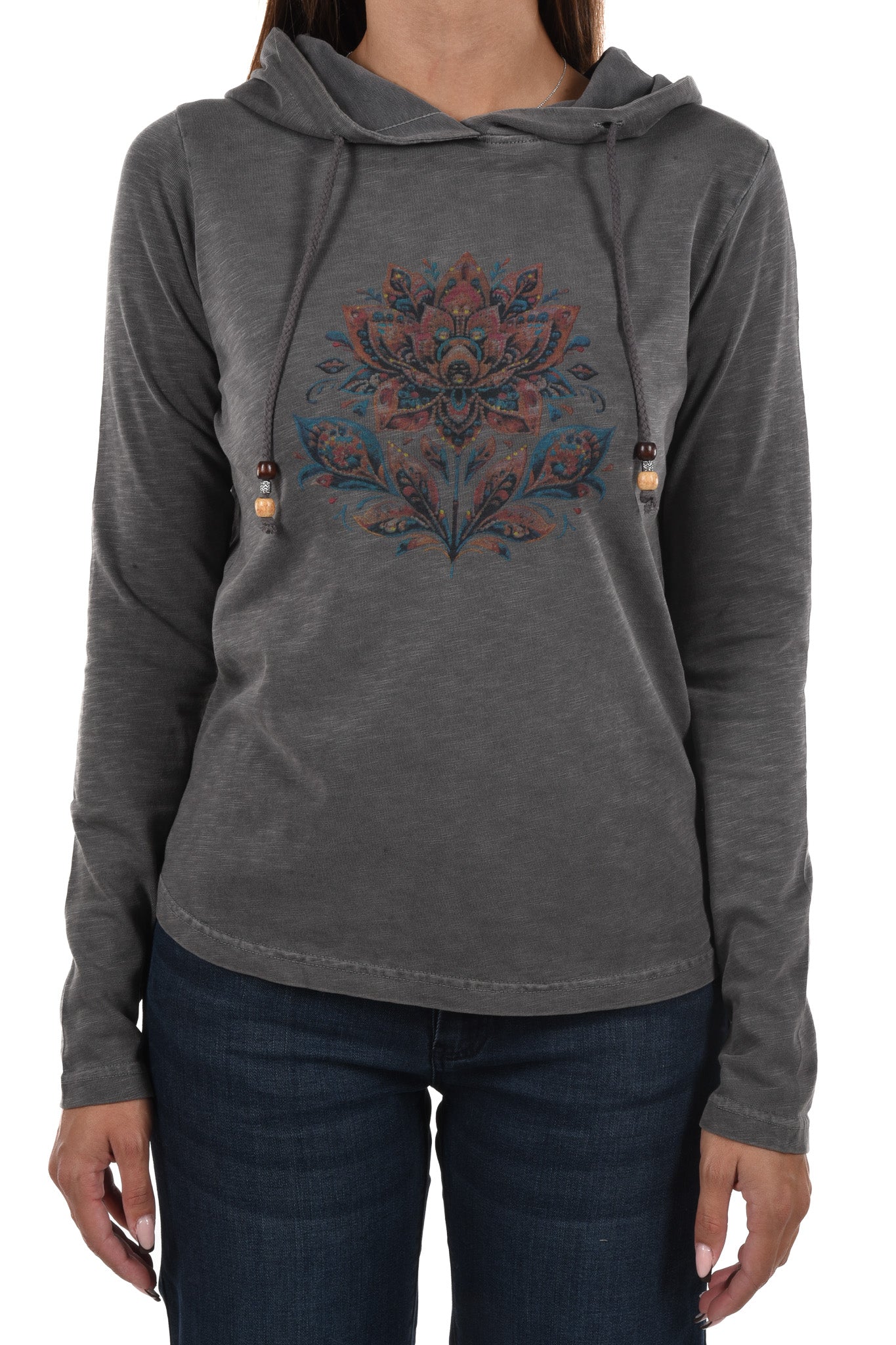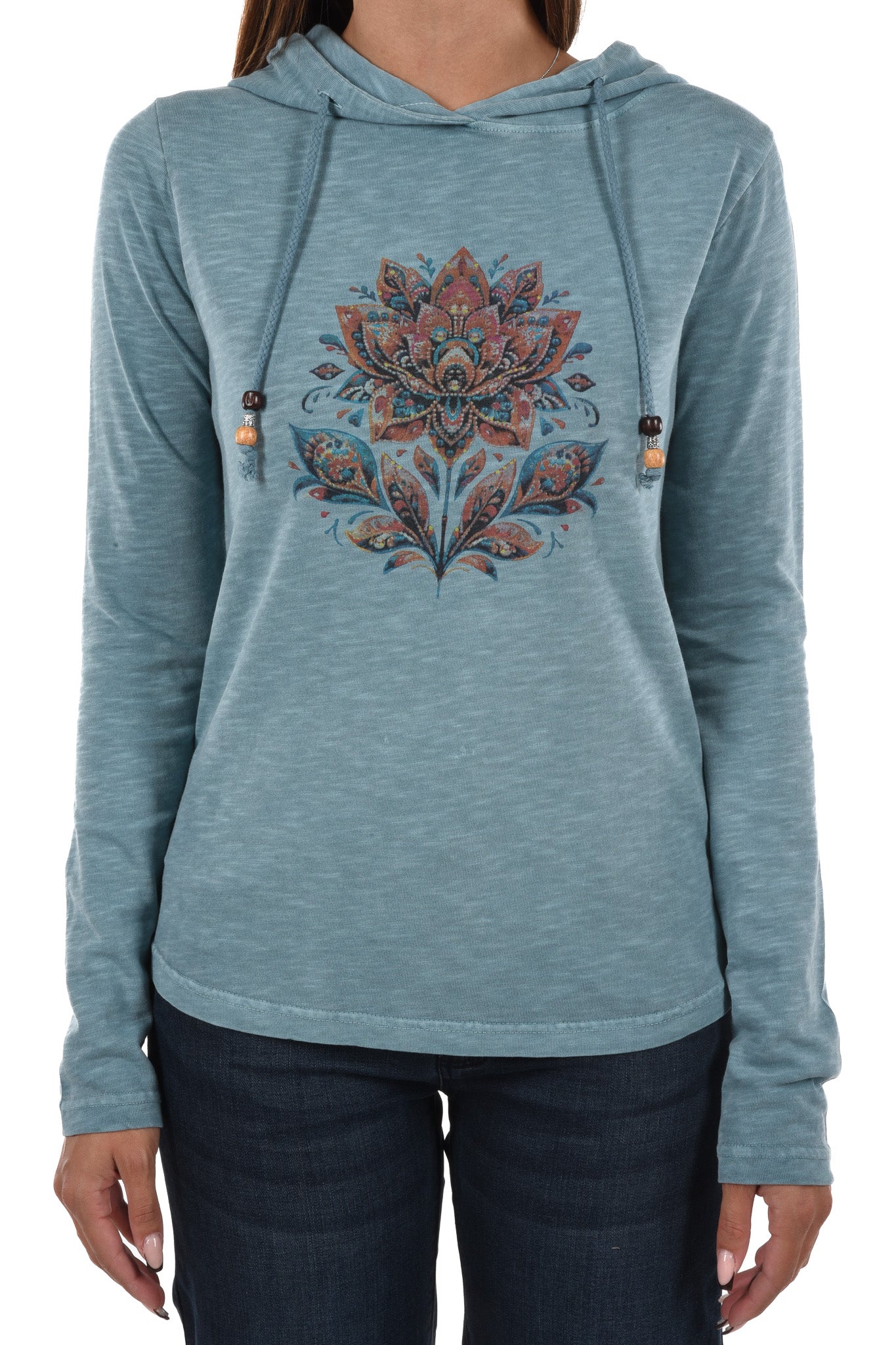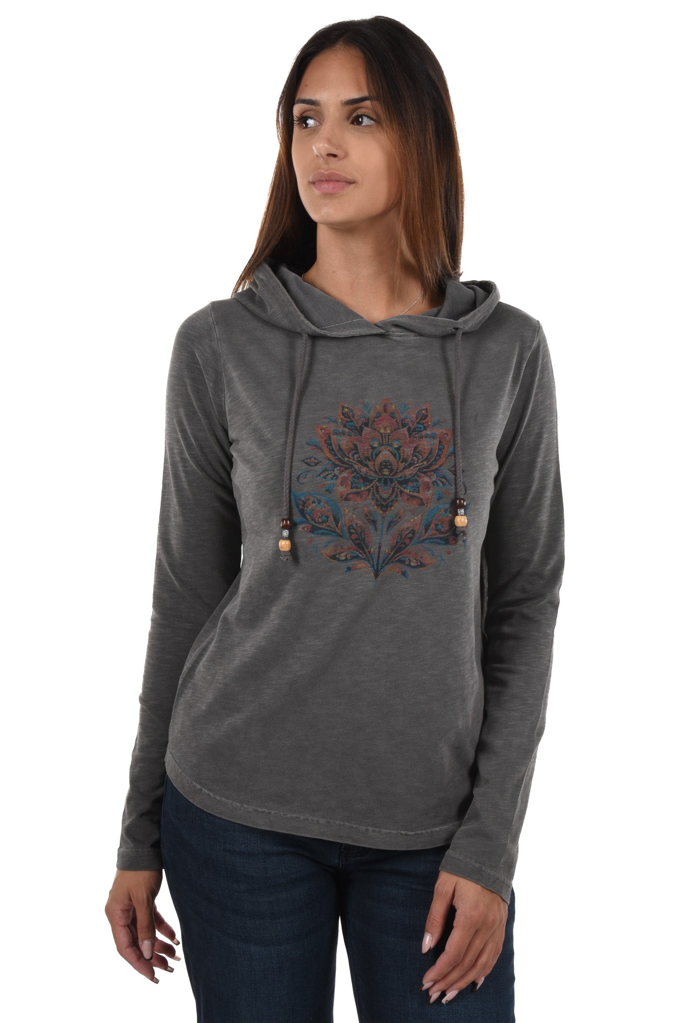 Notre mannequin mesure 172cm et porte une taille 27 Inch pour le jeans et une taille S pour le haut