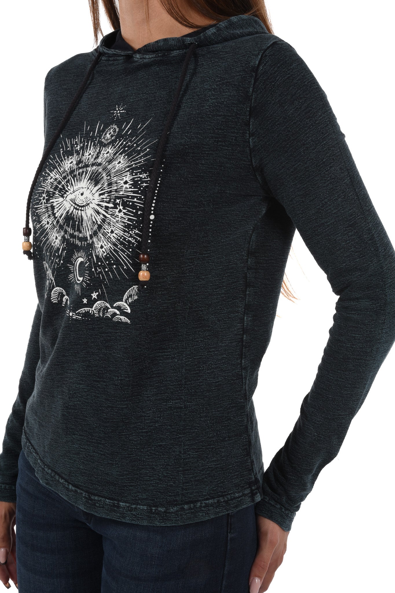 Notre mannequin mesure 172cm et porte une taille 27 Inch pour le jeans et une taille S pour le haut