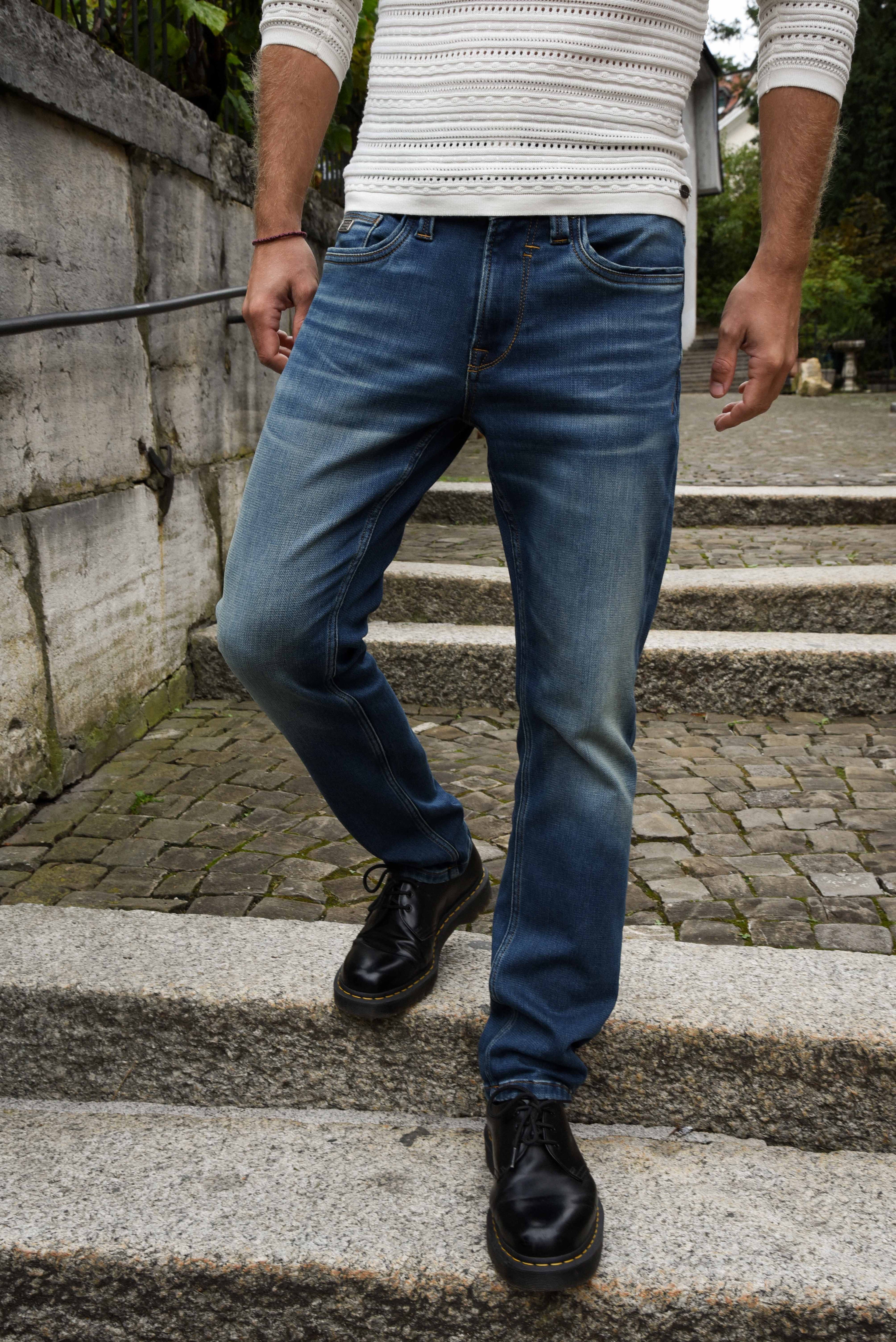 Unser Model ist 185 cm gross und trägt bei den Jeans Grösse 30 Inch und bei Oberteilen Grösse M