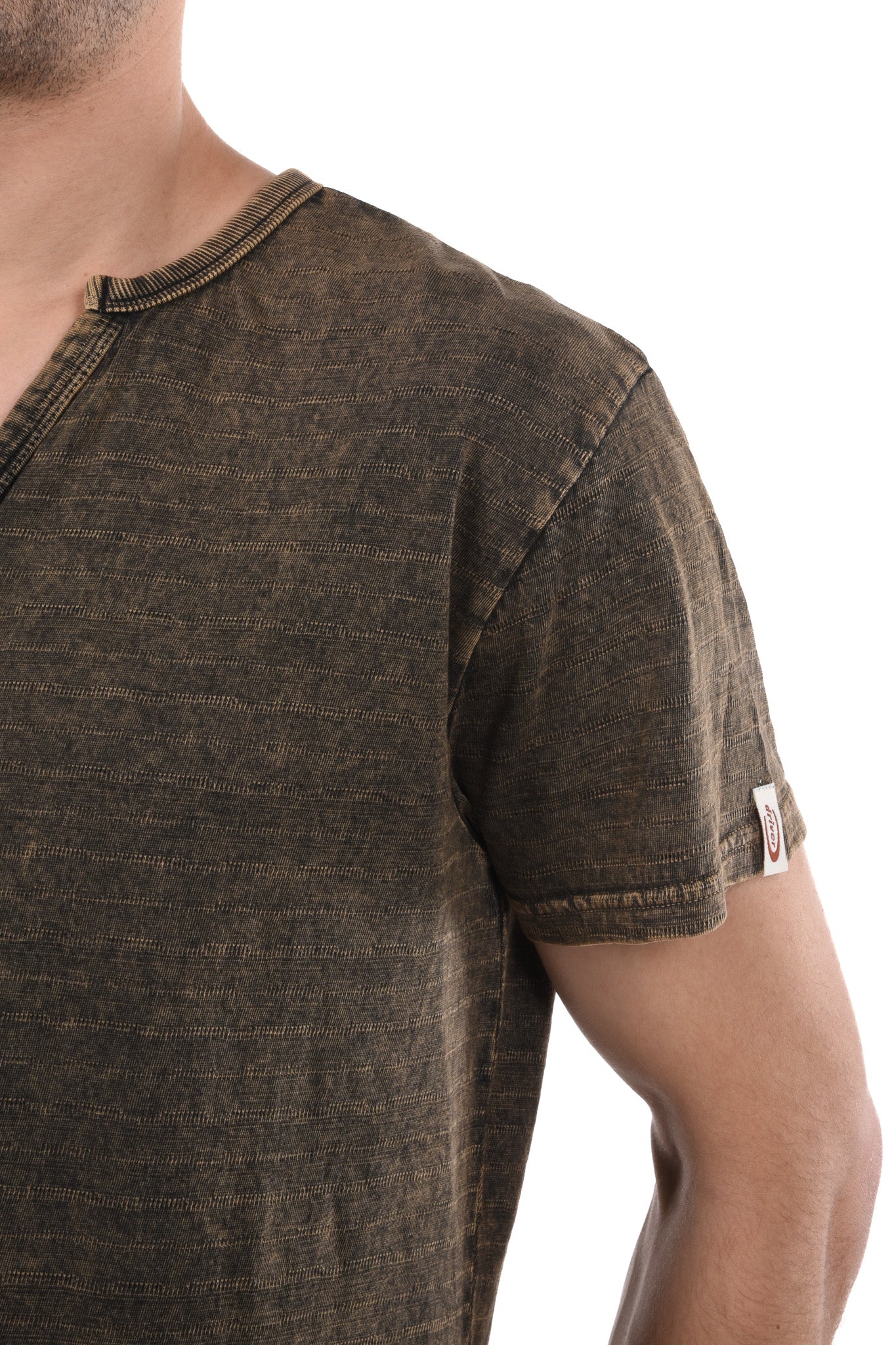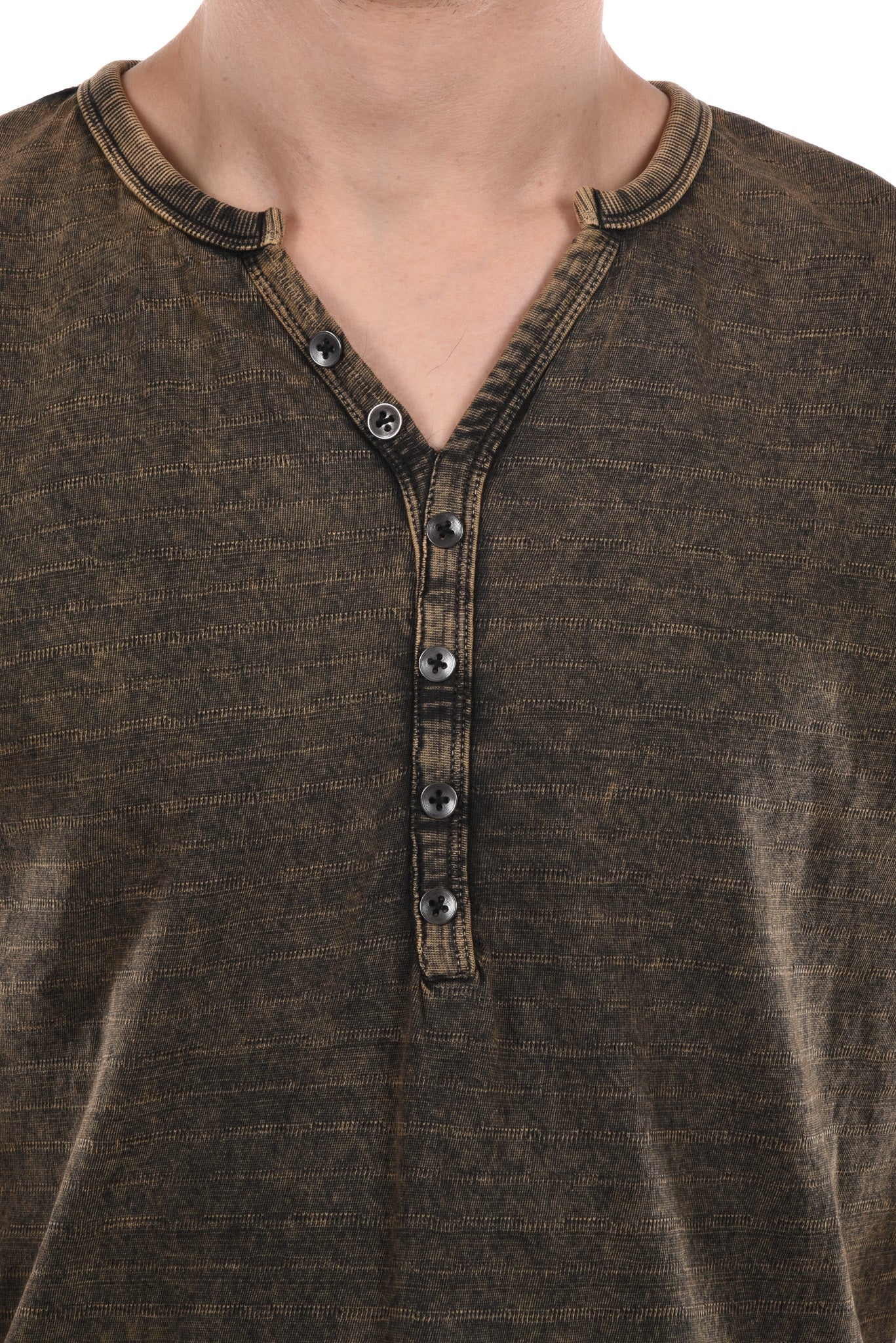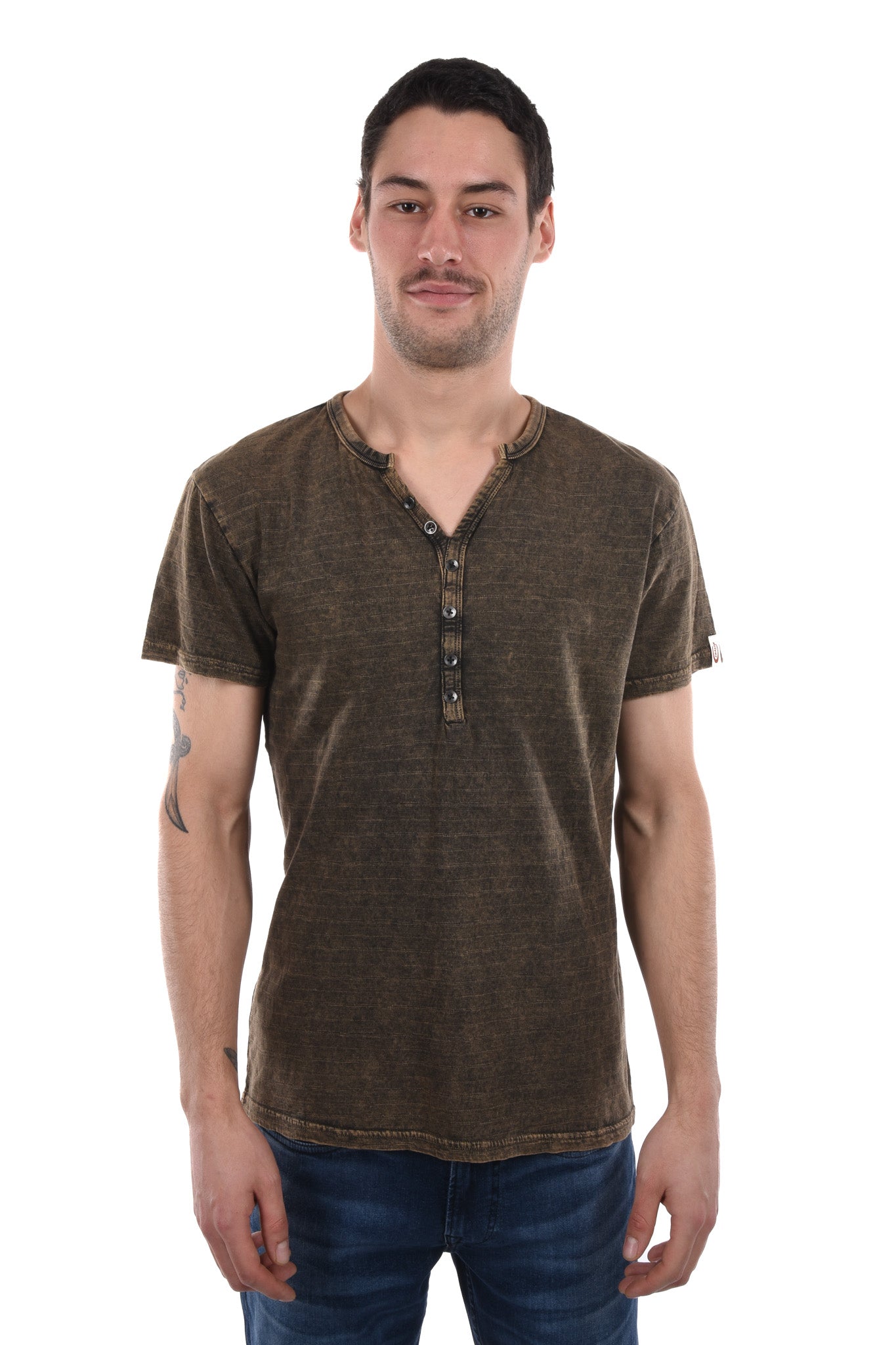 Unser Model ist 186 cm gross und trägt bei den Jeans Grösse 32 Inch und bei Oberteilen Grösse M