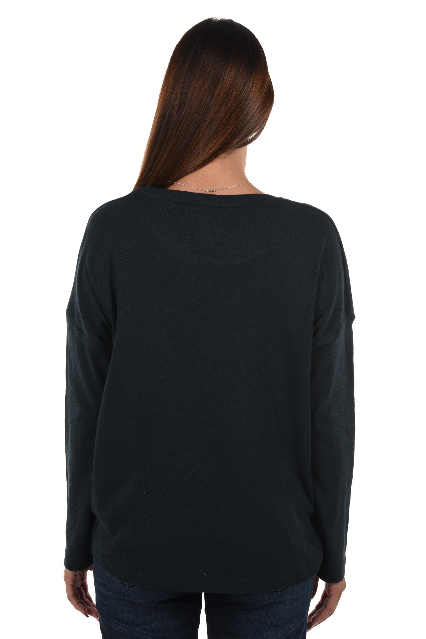 Unser Model ist 172 cm gross und trägt bei den Jeans Grösse 27 Inch und bei Oberteilen Grösse S