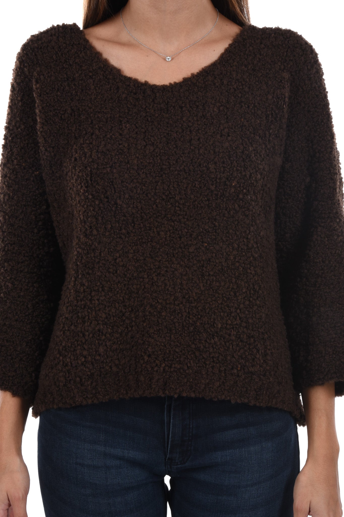 Unser Model ist 172 cm gross und trägt bei den Jeans Grösse 27 Inch und bei Oberteilen Grösse S