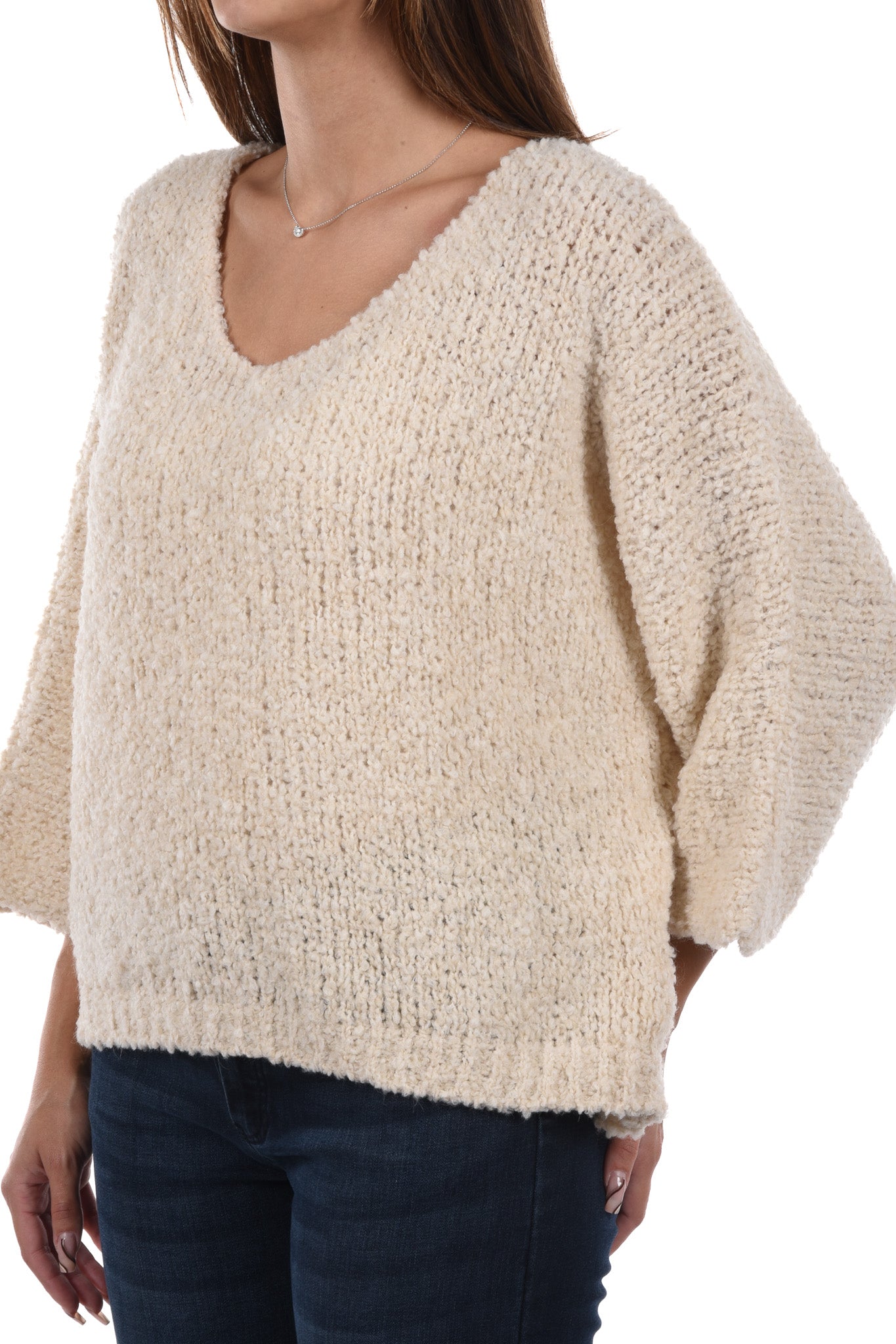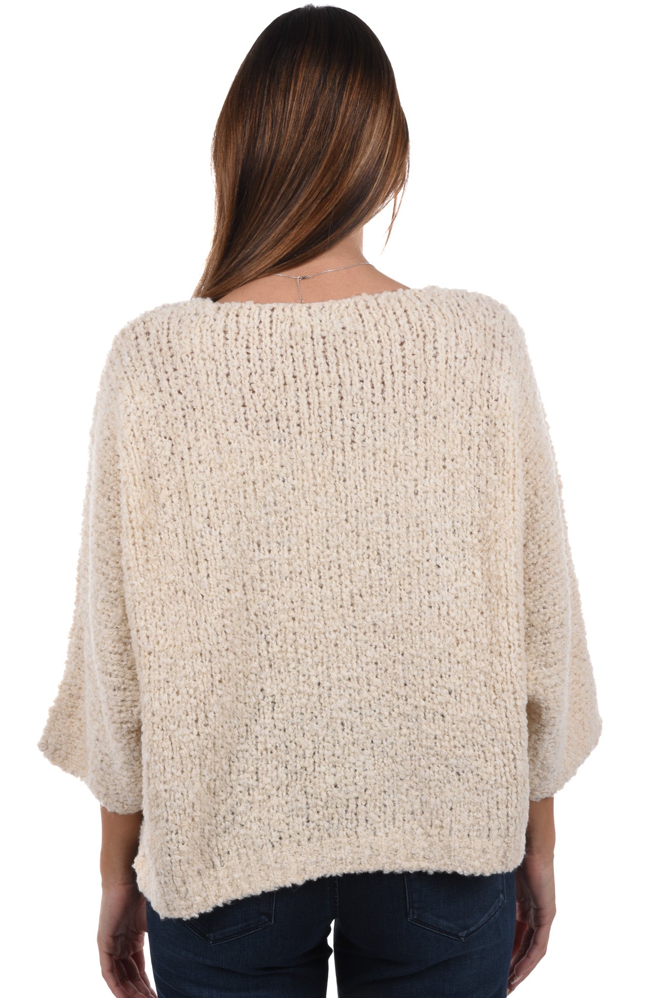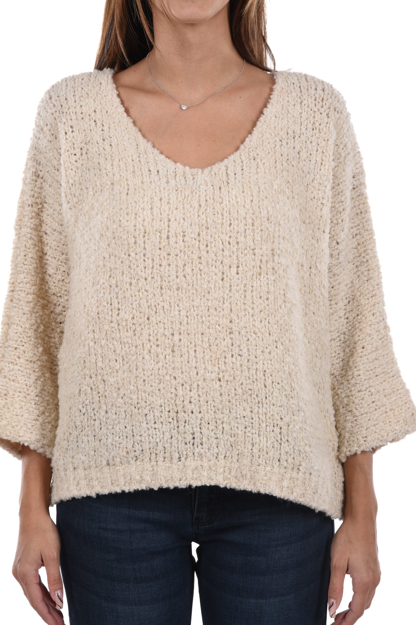 Unser Model ist 172 cm gross und trägt bei den Jeans Grösse 27 Inch und bei Oberteilen Grösse S